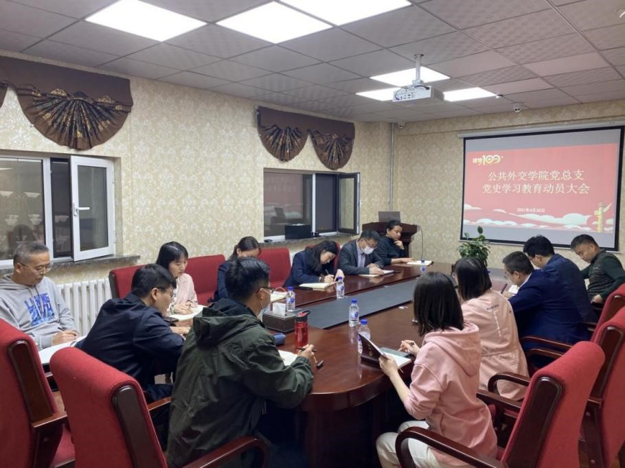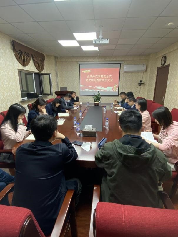 为深入学习贯彻习近平总书记在党史学习教育动员大会上的重要讲话精神并全面落实学校党史学习教育相关要求,2021年4月20日下午,公共外交学院党总支在行政楼217会议室召开党史学习教育动员大会,学院在长领导班子成员、各党支部书记及部分师生党员代表参加了本次会议。会议由学院党总支书记杨民主持。