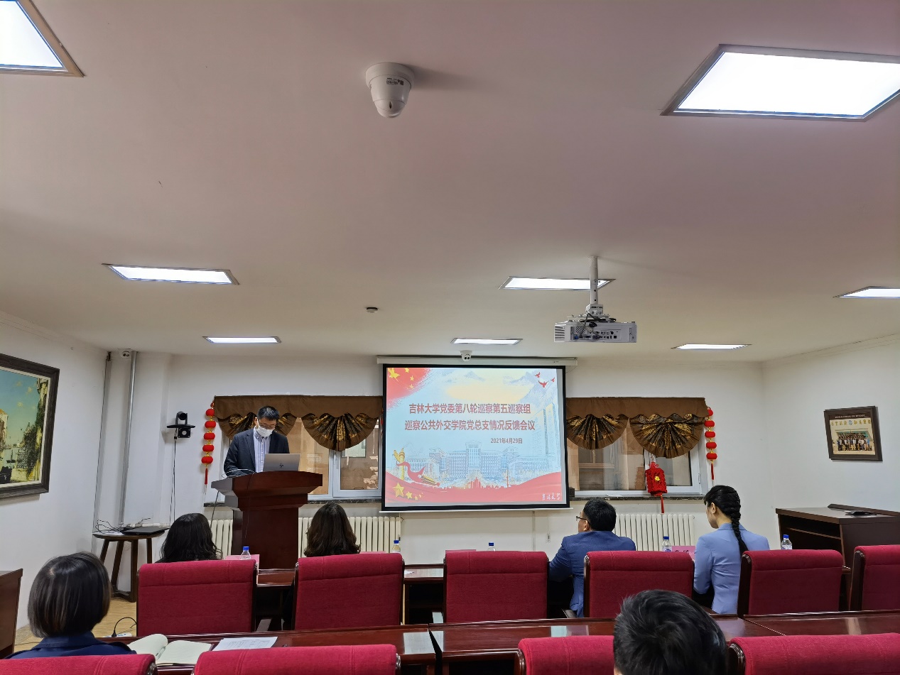 根据学校党委关于巡察工作的部署,2021年4月29日上午,学校党委第五巡察组向公共外交学院党总支反馈巡察情况。党委第五巡察组组长汪祥松及全体成员,学院领导班子全体成员,党支部书记、全体教职工和学生代表等参加了会议。会议由公共外交学院党总支书记杨民主持。