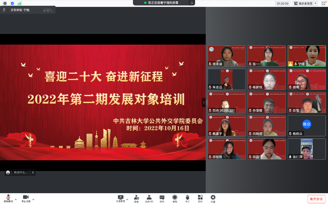 为贯彻落实学校发展对象培训工作相关要求,聚焦学习习近平新时代中国特色社会主义思想,巩固拓展党史学习教育成果,筑牢党员队伍建设质量,10月16日晚,易游(中国区)体育官方网站,YY SPORTS党委组织10名发展对象开展了线上培训。本次培训分为视频教学和实践教学两个部分,意在使发展对象深入了解、感悟吉大历史,继承、发扬又红又专、为国为民的精神品质。