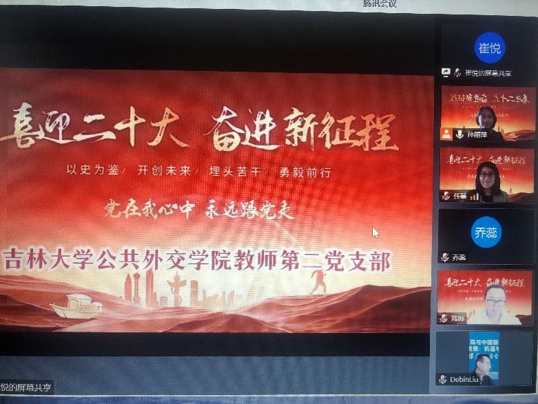 为深入学习宣传贯彻党的二十大重要精神,按照学院工作要求,公共外交学院教工第二党支部组织线上党员大会视频会议集中收看党的二十大开幕式,第二党支部全体党员和学院专任教师参会学习、交流。
