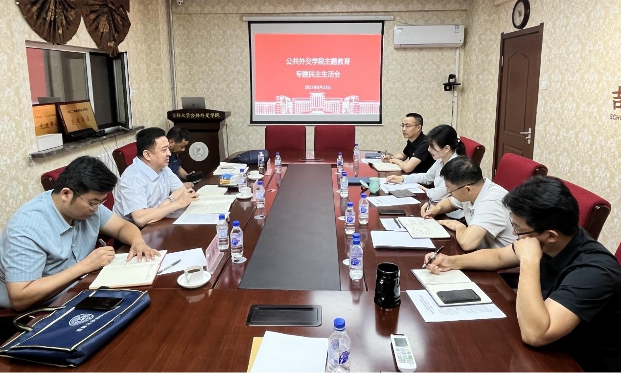 2023年8月23日上午,公共外交学院在吕振羽楼217会议室召开了学习贯彻习近平新时代中国特色社会主义思想主题教育专题民主生活会。学校党委主题教育第六巡回指导组组长陈密同志、副组长蒲韶华同志、联络员焦国伟同志到会指导。学院处级党员领导干部参加会议,会议由党委书记杨民同志主持。