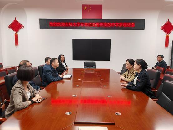 宣讲结束后,团组与校方领导进行座谈,就拓宽招生宣传途径,加强交流合作进行了有效沟通。校方感谢吉林大学招生团组的到访,并表示吉林大学是福州高级中学学子们心仪的高等学府,学校愿为我校提供优质生源作出更大努力。