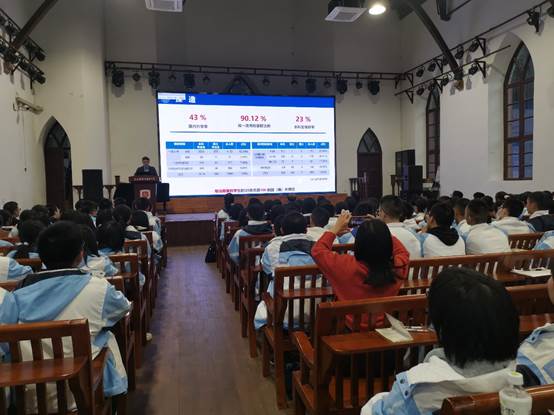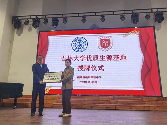 福州高级中学创办于1881年,是福建省一级达标中学,福建省重点中学。2023年度有2名学子被吉林大学录取。福州高级中学党委副书记、校长陈霞,教务处主任张鸿,教务处副主任欧平,高二、高三年级学生200余人出席活动。