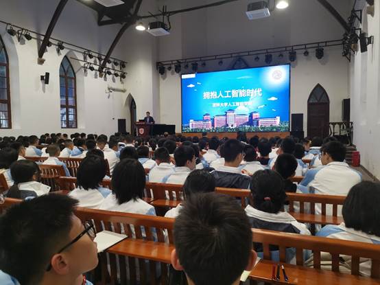 郑东书记代表吉林大学向福州高级中学授予“吉林大学优秀生源基地”牌匾。陈贺昌老师以“拥抱人工智能时代”为主题向与会师生介绍人工智能的发展简史、战略地位和未来趋势,并介绍吉林大学人工智能学院的办学理念、师资团队和学生培养等内容,得到了较好的反响。